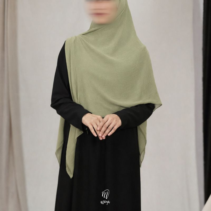 Hijab segi empat dengan bahan ceruty textured yang lembut, ringan, dan mudah dibentuk. Memberikan tampilan elegan namun tetap effortless untuk dipakai sehari-hari maupun acara spesial.