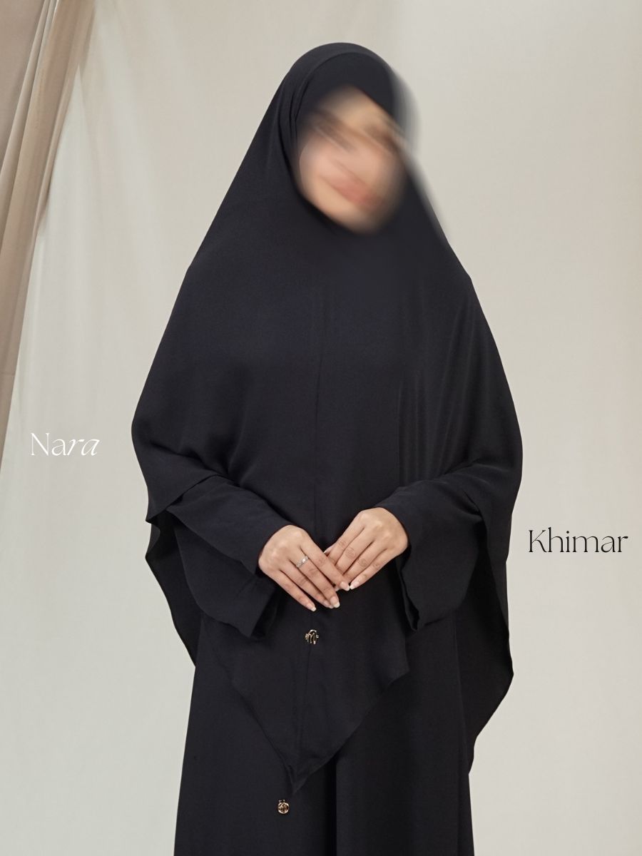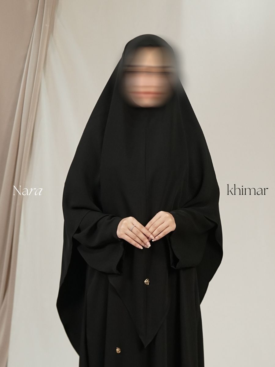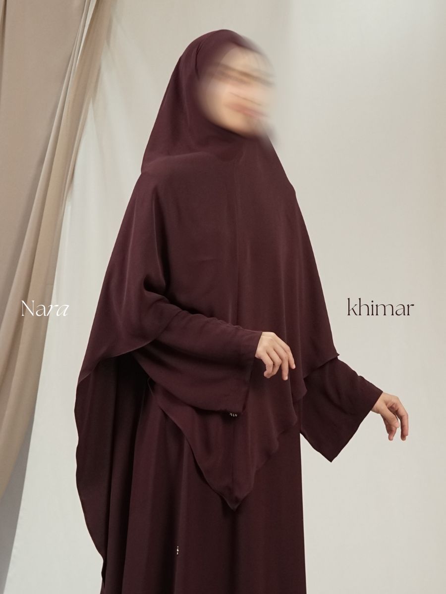Khimar Nara hadir dengan dua model sesuai materialnya. Keduanya nyaman, adem, dan jatuh rapi ketika dipakai—cocok untuk tampilan harian hingga acara formal.